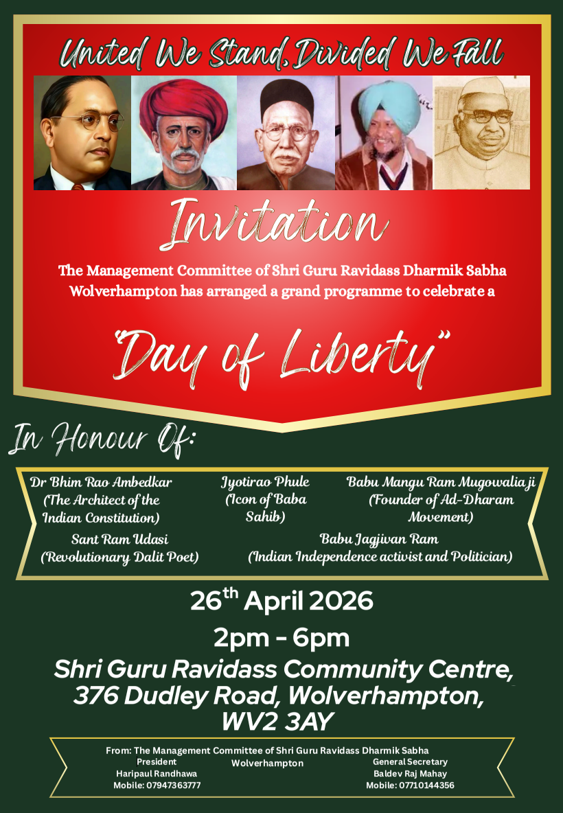 The Management Committee of Shri Guru Ravidass Dharmik Sabha Wolverhampton have arranged a grand programme to celebrate a